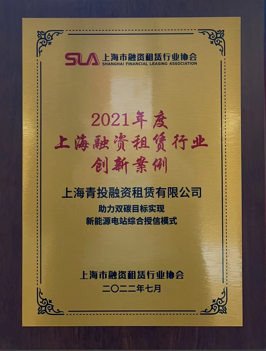 榮獲上海融資租賃行業“綠色租賃領域創新案例獎”