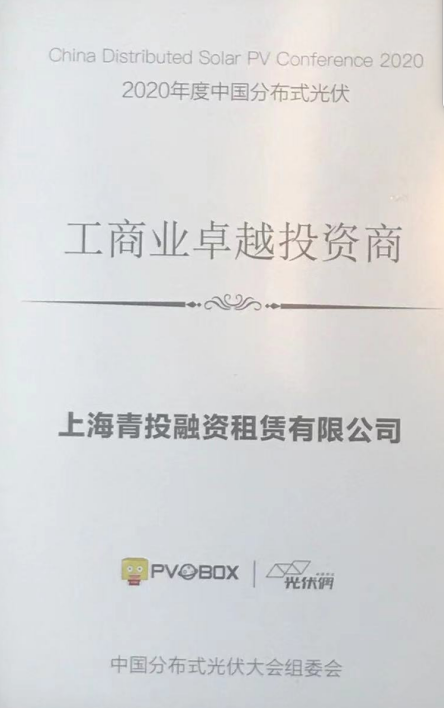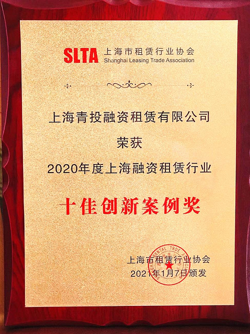 上海青投融資租賃有限公司榮獲“2020年度上海融資租賃行業十佳創新案例獎”