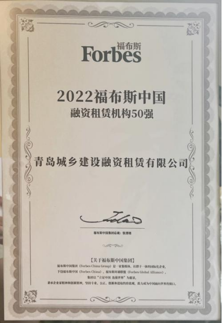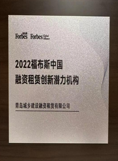 榮獲2022福布斯中國融資租賃創新潛力機構
