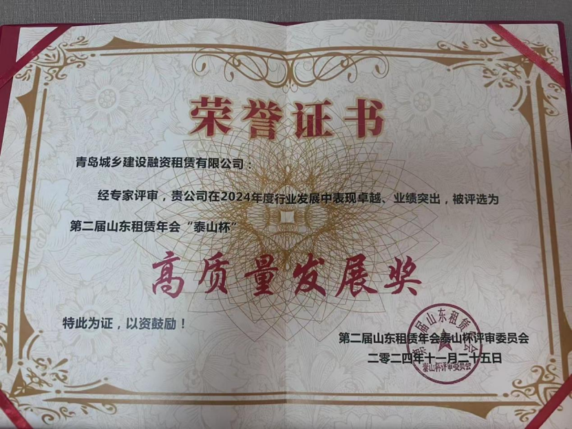 榮獲青島市融資租賃行業協會“卓越貢獻”獎